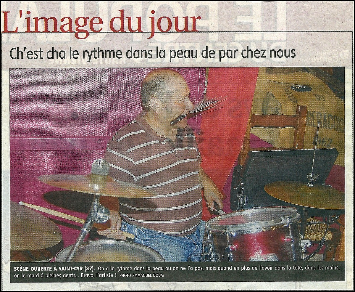 Didier Lescouzère ,le batteur de l'orchestre Jean-pierre Roy, a fait l'objet de" l'image du jour" du Populaire du centre (le journal le plus lu en Limousin)